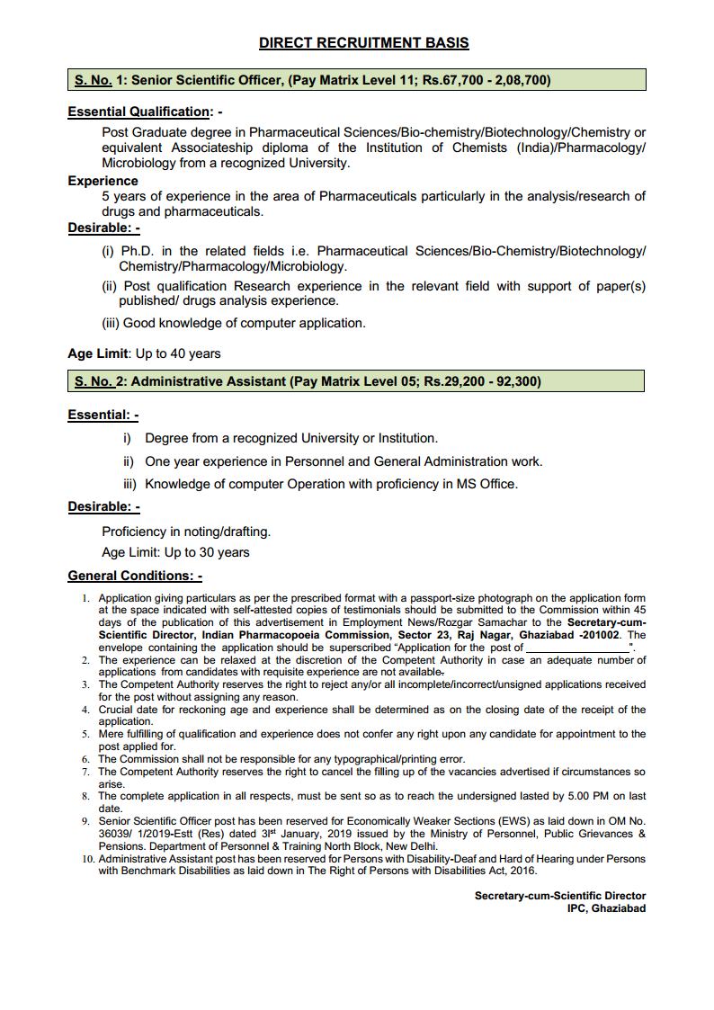 - Walk-in Interview for filling up of the vacant positions for Pharmacopoeial Associate at IPC, an Autonomous organization under the Ministry of Health & Family Welfare, Ghaziabad, through Outsourcing Manpower Providing Agency