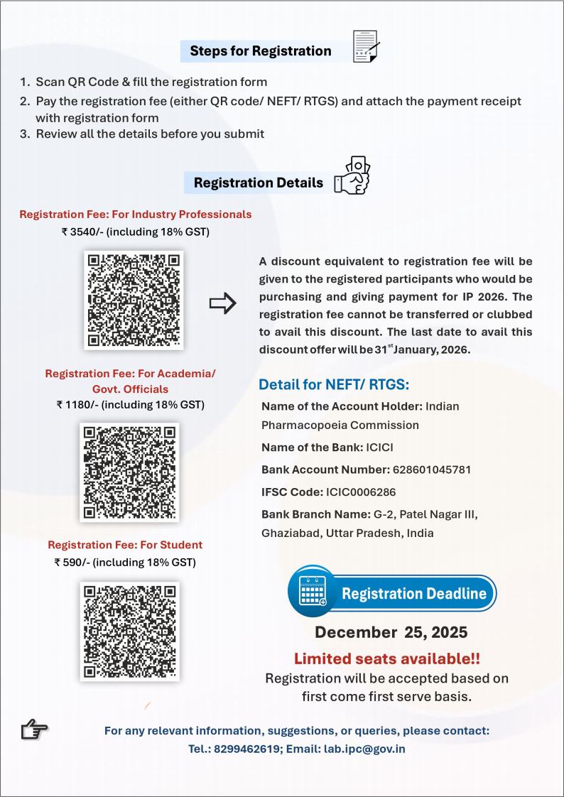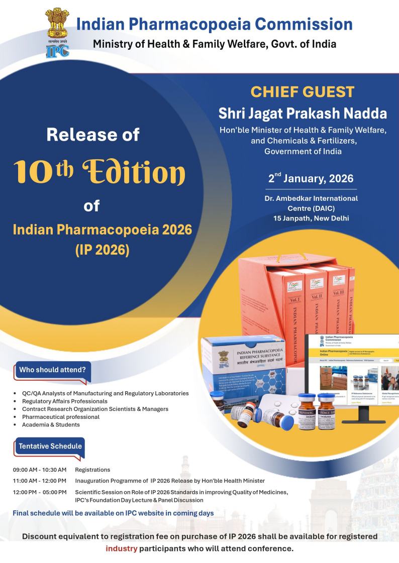 Registration Open for the Release of the 10th Edition of Indian Pharmacopoeia 2026 (IP 2026)