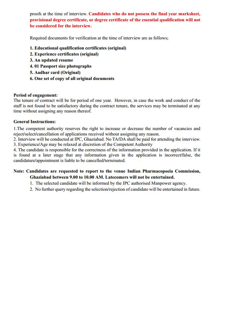 Walk-in Interview is going to be held on 28th January 2026 for filling up of the vacant post of Human Resource Associate in Indian Pharmacopoeia Commission (IPC), an Autonomous organization under the Ministry of Health & Family Welfare, Ghaziabad Applications are invited for the post of Assistant Grade 1 at Indian Pharmacopoeia Commission (IPC), an Autonomous organization under the Ministry of Health & Family Welfare, Ghaziabad, through Manpower Resource Outsourcing Services Providing Agency Corrigendum regarding walk-in Interview for the Post of Junior Materiovigilance Associate at Indian Pharmacopoeia Commission, Ghaziabad on 9th January 2026 Walk-in Interview is going to be held on 12th January 2026 for filling up of the vacant post of Human Resource Associate in Indian Pharmacopoeia Commission (IPC), an Autonomous organization under the Ministry of Health & Family Welfare, Ghaziabad Union Health Minister Shri J. P. Nadda Releases 10th Edition of Indian Pharmacopoeia -IP 2026 Walk-in Interview is going to be held on 9th January 2026 for filling up of the vacant post of Jr Materiovigilance Associate in Materiovigilance Programme of India, Indian Pharmacopoeia Commission (IPC), an Autonomous organization under the Ministry of He Walk-in Interview for filling up of the vacant positions for Pharmacopoeial Associate at IPC, an Autonomous organization under the Ministry of Health & Family Welfare, Ghaziabad, through Outsourcing Manpower Providing Agency Walk-in Interview for filling up of the vacant position for Lab attendant at IPC, an Autonomous organization under the Ministry of Health & Family Welfare, Ghaziabad, through Outsourcing Manpower Providing Agency Registration Open for the Release of the 10th Edition of Indian Pharmacopoeia 2026 (IP 2026) 1st Annual Meet of Regional Centres of PvPI & MvPI on 27th - 28th February 2026 Internship Opportunity: Materiovigilance Programme of India (MvPI) Applications are invited for 36th Skill Development Programme on Pharmacovigilance scheduled from 9th-13th March 2026. Applications are invited for the engagement of following contractual position at Indian Pharmacopoeia Commission (IPC), Ministry of Health & Family Welfare, Ghaziabad Walk-in Interview is going to be held on 13th December 2025 for filling up of the vacant positions at Indian Pharmacopoeia Commission (IPC), an Autonomous organization under the Ministry of Health & Family Welfare, Ghaziabad, through Outsourcing Manpower INDIA JOINS 10th ANNIVERSARY CAMPAIGN FOR SAFER USE OF MEDICINES Vacancy circular for the post of Senior Scientific Officer and Administrative Assistant MoU signed between IPC and UP Pharmacy Council (UPPC) to promote rational use of medicines through NFI IPC, NCC-PvPI Concludes 5th National Pharmacovigilance Week with Valedictory Ceremony at Ghaziabad Indian Pharmacopoeia Commission Observes 5th National Pharmacovigilance Week to Promote Responsible Reporting of Adverse Drug Reactions Internship Opportunity: Materiovigilance Programme of India (MvPI) International Webinar on "Strengthening Signal Detection and Risk Management Framework" on 18th September 2025 Notice regarding change of Venue for the Written Examination for the post of Scientific Assistant scheduled to be held on 13.09.2025 IPC Expands Helpline Number 1800-180-3024- Multilingual IVR System Cancellation Notice, regarding recruitment for filling up one vacant post of Administrative Assistant in IPC which was advertised in Employment News edition dated 18th-24th January, 2025 Frequently Asked Questions (FAQs) about the Indian Pharmacopoeia (IP), IP Reference Substances (IPRS), and their compliance Shortlisted candidates for the Written Examination for filling up one vacant post of Scientific Assistant on 13th September, 2025, Instructions to the Candidates and Recruitment Rules for the post of Scientific Assistant Frequently Asked Questions (FAQs) about the Indian Pharmacopoeia (IP), IP Reference Substances (IPRS), and their compliance Vacancy circular for filling up of the vacant post of Head Information Technology in Indian Pharmacopoeia Commission (IPC) Vacancy circular for filling up of the vacant post of Marketing Executive in Indian Pharmacopoeia Commission (IPC) Vacancy circular for filling up of the vacant post of Marketing Executive in Indian Pharmacopoeia Commission (IPC)