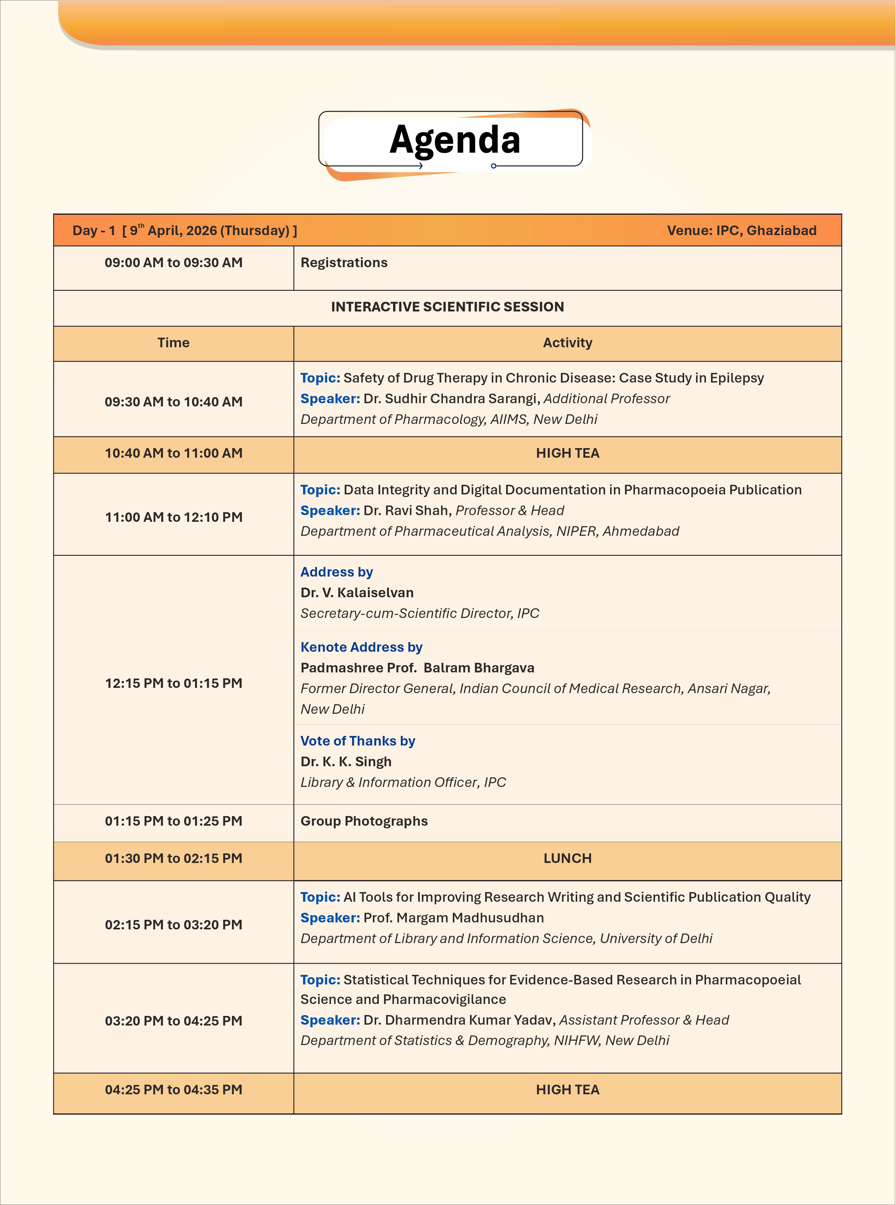Venue: Indian Pharmacopoeia Commission, Ghaziabad