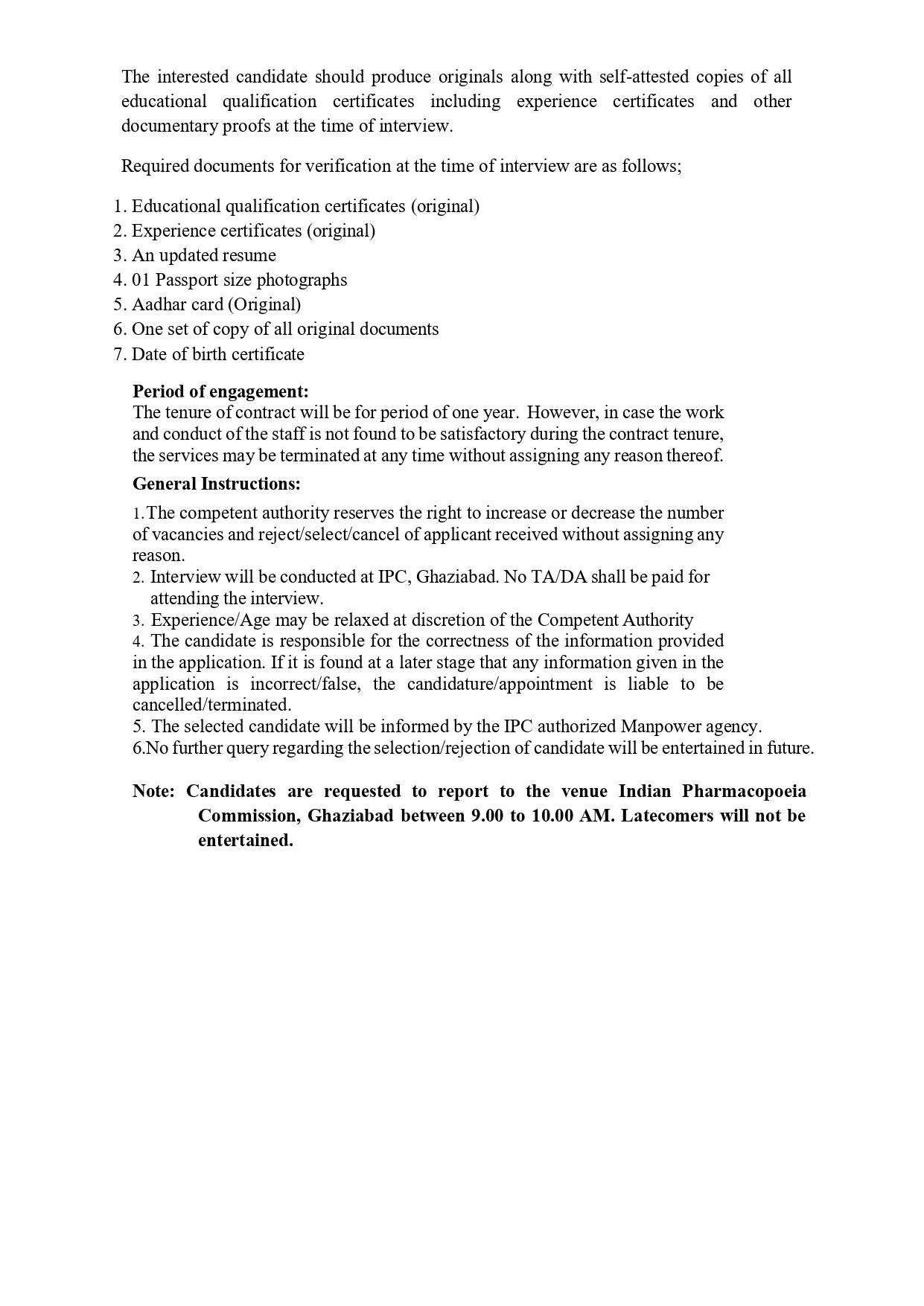 - Corrigendum regarding walk-in Interview for the Post of Junior Materiovigilance Associate at Indian Pharmacopoeia Commission, Ghaziabad on 9th January 2026