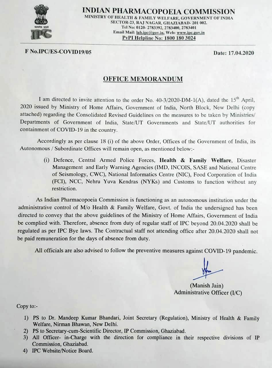 - Walk-in Interview for filling up of the vacant positions for Pharmacopoeial Associate at IPC, an Autonomous organization under the Ministry of Health & Family Welfare, Ghaziabad, through Outsourcing Manpower Providing Agency